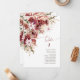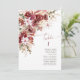 Elegant boho wedding table card featuring watercolor burgundy and blush florals with terracotta accents — perfect for romantic fall weddings.