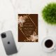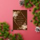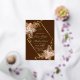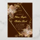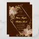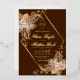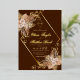Modern stylish dark wedding card brown with gold dust on with a gold ink pour effect and modern calligraphy. Classy and elegant, luxury and modern invitation.