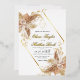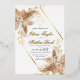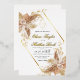 Modern stylish dark wedding card white with gold dust on with a gold ink pour effect and modern calligraphy. Classy and elegant, luxury and modern invitation.