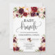Boho burgundy marsala floral gold baby brunch invitation
