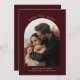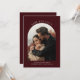 This beautiful Save the Date features an arched photo of the couple set against a burgundy background, making it perfect for a fall or winter wedding. The back of the invitation includes a customizable QR code that allows your guests to easily access additional wedding details or photos online. To personalize your invitation, simply click 'personalize this design,' upload your photo, and enter your details. Zazzle will take care of the rest.