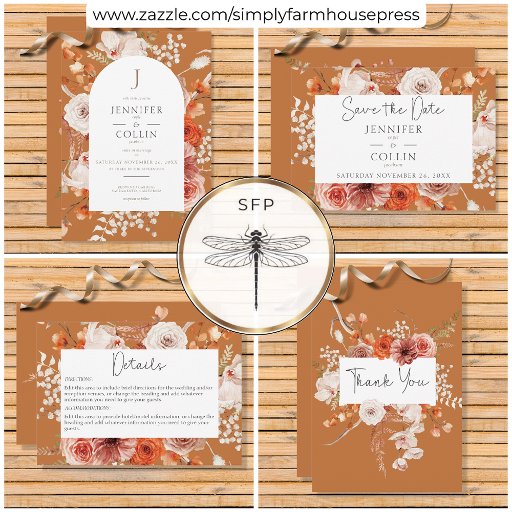 Boho Burnt Orange Floral Arch Monogram RustDesigned by Kathe Santillo