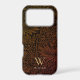 Boho Burnt Orange Floral Gold Monogram Name Phone Case. Monogram is an elegant gold serif font and your name is a white sans serif font.