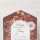 Boho Burnt Orange Rust Fall Floral 3 Dinner All In One Invitation