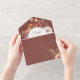 ALSO AVAILABLE WITH A QR CODE TO SCAN IN THE RSVP AREA OR WITHOUT DINNER SELECTION OPTIONS. This design features a burnt orange rust, peach, brown and cream watercolor fall boho floral bouquet frame on a distressed rust background. Perfect for a late summer or fall wedding. Created by Simply Farmhouse Press.