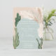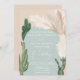 Tropical Boho desert green cactus and pampas grass wedding invite with wild cacti, pampas watercolor,arch shaped with muted earth tones with light beige and terracotta colours with light sage green on beige sandy arch.