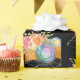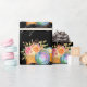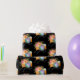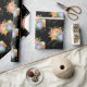 Wrapping paper with a black background featuring a camera and pretty flowers with a piece of film strip.