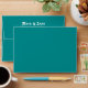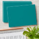 Chic solid colour teal, 70's style pattern lined envelope with return address on back flap.