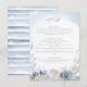 This lovely ethereal ocean themed dusty blue wedding details enclosure card is perfect for summer beach destination weddings. The coastal chic design has a variety of delicate watercolor coral, starfish and seashells and elegant stylish text with a modern script calligraphy font.