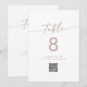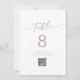 These boho chic blush pink QR code table numbers are perfect for a minimalist wedding. The dusty rose pink and white modern bohemian design features simple rustic calligraphy with a unique yet classic style.