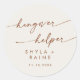 This boho chic bohemian cream hangover helper favour classic round sticker is perfect for a minimalist wedding. The neutral terracotta burnt orange and cream modern bohemian design features simple rustic calligraphy with a unique yet classic style.