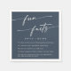 These boho chic dark navy blue wedding fun fact napkins are perfect for a minimalist wedding. The muted and moody neutral dark blue modern bohemian design features simple rustic calligraphy with a unique yet classic style.