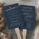 Boho Chic Dark Navy Blue Wedding Program Hand Fan