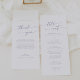 This boho chic dusty purple thank you and wedding menu is perfect for a minimalist wedding. The light lavender purple and white modern bohemian design features simple rustic calligraphy with a unique yet classic style.