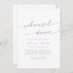 This boho chic dusty purple wedding rehearsal dinner invitation is perfect for a minimalist night before wedding rehearsal. The light lavender purple and white modern bohemian design features simple rustic calligraphy with a unique yet classic style.