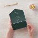 This boho chic emerald green dual QR code wedding in all in one invitation is perfect for a minimalist wedding. The dark and moody hunter forest green modern bohemian design features simple rustic calligraphy with a unique yet classic style.