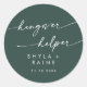 This boho chic emerald green hangover helper favour classic round sticker is perfect for a minimalist wedding. The dark and moody hunter forest green modern bohemian design features simple rustic calligraphy with a unique yet classic style.