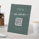 Boho Chic Emerald Green QR Code Wedding Menu Pedestal Sign
