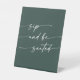 Boho Chic Emerald Green Sip Be Seated Wedding Pedestal Sign