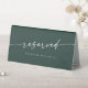 This boho chic emerald green wedding reserved sign is perfect for a minimalist wedding. The dark and moody hunter forest green modern bohemian design features simple rustic calligraphy with a unique yet classic style.
