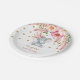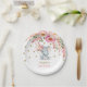 Gorgeous elephant theme paper plate featuring feminine pink watercolor flowers, feathers and faux gold confetti