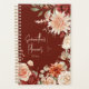 Floral Boho Chic style planner. You're going to love this planner with a beautiful border of fall blooms--spicy red and orange mums, soft peach roses creamy white hydrangeas and more. The cover is personalised with a name in a modern calligraphy script along with the year. These planners make wonderful Christmas gifts for busy moms or anyone who has a need to plan their time/days in a meticulous manner.