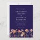 Boho chic floral Fall navy blue and white wedding invitation with watercolor Wildflower Meadow hand painted flowers. This elegant navy blue Wedding Invitation, a stunning blend of autumnal charm and elegant sophistication. This watercolor design showcases hand-painted wildflowers in a vibrant garden meadow, with a rich palette of burnt orange, terracotta, brown, purple, yellow, coral, burnt umber, peach, and soft pink, capturing the warmth and beauty of the fall season on an elegant navy blue background. Elegant modern white typography adds a refined touch, while the whimsical florals bring a personal, boho flair to your invitation. With easy-to-use templates, you can effortlessly customise all your essential wedding details.