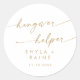 This boho chic gold and white hangover helper favour classic round sticker is perfect for a minimalist wedding. The neutral yellow gold and white modern bohemian design features simple rustic calligraphy with a unique yet classic style.