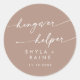 This boho chic neutral taupe hangover helper favour classic round sticker is perfect for a minimalist wedding. The beige brown earth tone modern bohemian design features simple rustic calligraphy with a unique yet classic style.