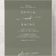 This boho chic olive green dual QR code wedding in all in one invitation is perfect for a minimalist wedding. The woodsy dark green earth tone modern bohemian design features simple rustic calligraphy with a unique yet classic style.