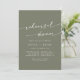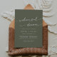 This boho chic olive green wedding rehearsal dinner invitation is perfect for a minimalist night before wedding rehearsal. The woodsy dark green earth tone modern bohemian design features simple rustic calligraphy with a unique yet classic style.