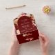 Elegant boho-chic red All in One Wedding Invitation Card decorated with red Orchids and boho-chic Botanicals. RSVP Card included and prepared for Mailing.