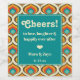 Boho Chic Retro Pattern, personalised bottle labels. 70's-inspired colourful pattern frame in orange, brown and teal colours. Retro typography in sandy beige with heart accent on rustic teal blue panel frame.
