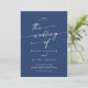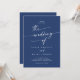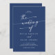 This boho chic royal blue the wedding of invitation is perfect for a minimalist wedding. The bold dark blue modern bohemian design features simple rustic calligraphy with a unique yet classic style.