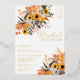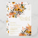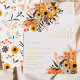Embrace the warmth of the country sun with our boho-rustic orange bridal shower invitations, adorned with beautiful sunflowers, green leaves, and brown red branches. Perfect for the free-spirited bride-to-be. with a brushed script typography on a simple editable white background and real gold foil.