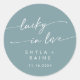 This boho chic seafoam teal lucky in love favour classic round sticker is perfect for a minimalist wedding. The colourful blue green modern bohemian design features simple rustic calligraphy with a unique yet classic style reminiscent of the beach, ocean and summer seaside.