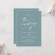 This boho chic seafoam teal the wedding of invitation is perfect for a minimalist wedding. The colourful blue green modern bohemian design features simple rustic calligraphy with a unique yet classic style reminiscent of the beach, ocean and summer seaside.