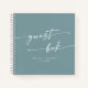 This boho chic seafoam teal wedding guest book is perfect for a minimalist wedding. The colourful blue green modern bohemian design features simple rustic calligraphy with a unique yet classic style reminiscent of the beach, ocean and summer seaside.
