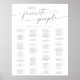 This boho chic slate blue printable seating chart poster sign is perfect for a minimalist wedding. The pale dusty blue and white modern bohemian design features simple rustic calligraphy with a unique yet classic style.