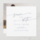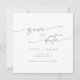 This boho chic slate blue square photo back save the date card is perfect for a minimalist wedding. The pale dusty blue and white modern bohemian design features simple rustic calligraphy with a unique yet classic style.