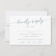 This boho chic teal and white menu choice rsvp card is perfect for a minimalist wedding. The blue green and white modern bohemian design features simple rustic calligraphy with a unique yet classic style reminiscent of the coastal beach and a summer ocean cruise.