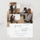 This boho chic teal and white multi photo QR code save the date card is perfect for a minimalist wedding. The blue green and white modern bohemian design features simple rustic calligraphy with a unique yet classic style reminiscent of the coastal beach and a summer ocean cruise.