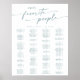 This boho chic teal and white printable seating chart poster sign is perfect for a minimalist wedding. The blue green and white modern bohemian design features simple rustic calligraphy with a unique yet classic style reminiscent of the coastal beach and a summer ocean cruise.