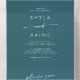 This boho chic teal blue dual QR code wedding in all in one invitation is perfect for a minimalist wedding. The bold dark turquoise jewel tone modern bohemian design features simple rustic calligraphy with a unique yet classic style.