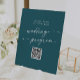 This boho chic teal blue QR code wedding program pedestal sign is perfect for a minimalist wedding. The bold dark turquoise jewel tone modern bohemian design features simple rustic calligraphy with a unique yet classic style.