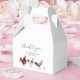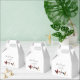 Boho and rustic farm theme baby shower favour box featuring watercolor illustration of chicken and a chick.