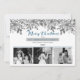 Boho three photo "Merry Christmas" blue and grey watercolor holly and berries floral holiday design. Simply add your photos--black and white or colour. Add your family name, first names and the year on front and you are all set. Composite design by Holiday Hearts Designs (rights reserved).