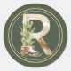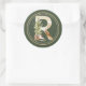 Boho Christmas Monogram R with Tree and Skates Classic Round Sticker