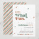 A fun Christmas party invitation that features a typography design in muted sage green, beige and terracotta tones and a retro font. This stylish invitation has a striped reverse side, it is easy to edit and is perfect for a holiday party. Pair with anything from the STELLA collection for a cohesive look.