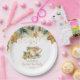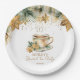 Christmas winter themed bridal shower tea party tableware personalised party plates, watercolor cup of tea with snowflakes poinsettia and cookies pine branches modern casual font winter bridal shower plates